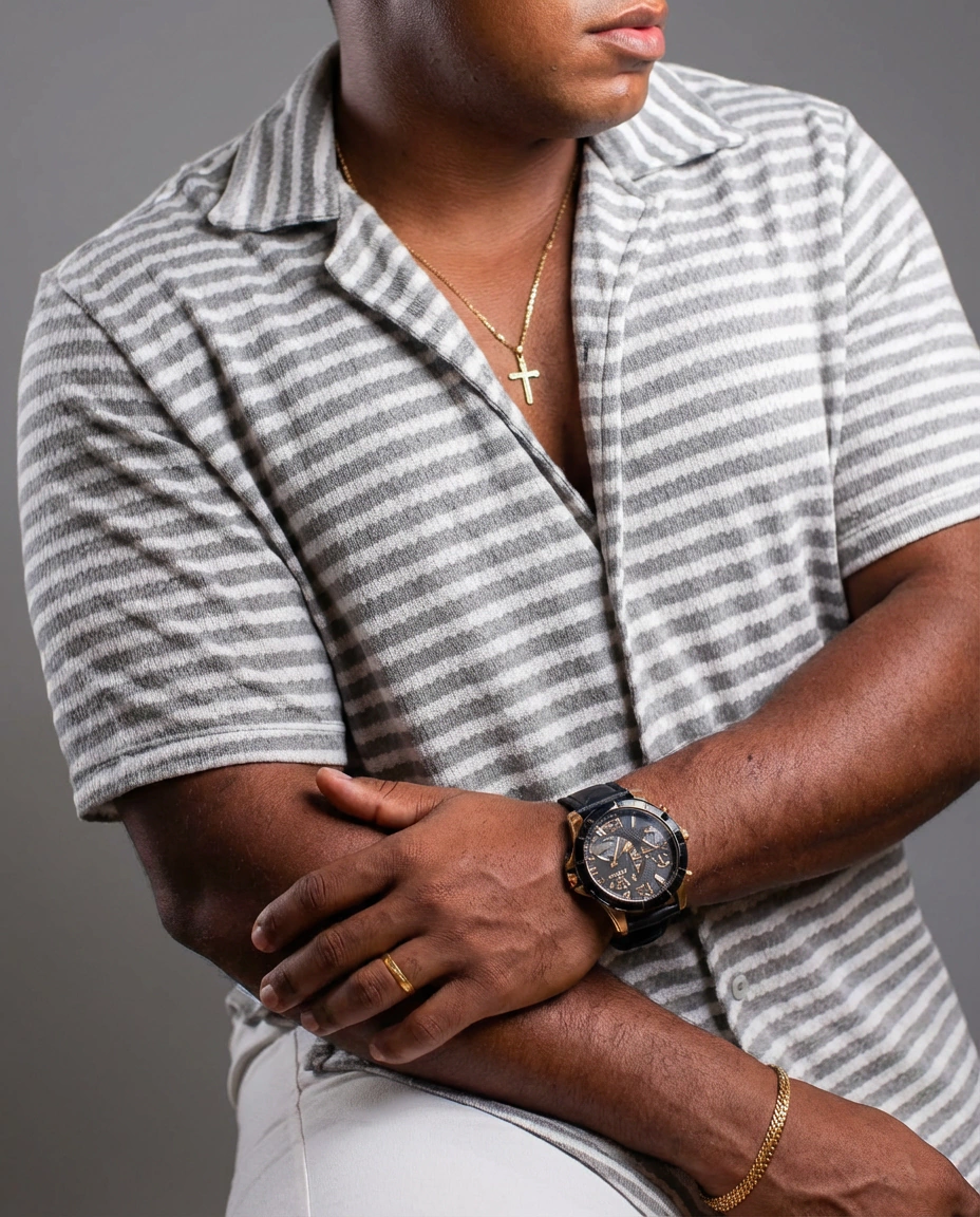 A Camisa Resort Lounge foi desenhada para o homem que não abre mão de estar bem vestido, mesmo nos momentos de lazer. Com uma estética inspirada nos destinos de verão mais exclusivos, esta peça traz uma textura listrada sutil que adiciona profundidade e riqueza visual sem perder a leveza.